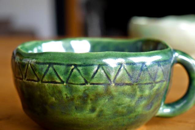 描いた部分だけ釉薬の色が濃くなって