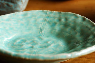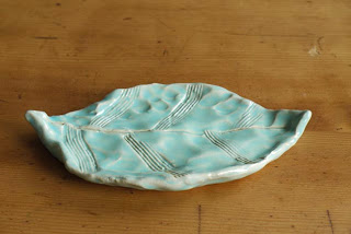 葉っぱ型の水色のお皿は制作時間5分です!